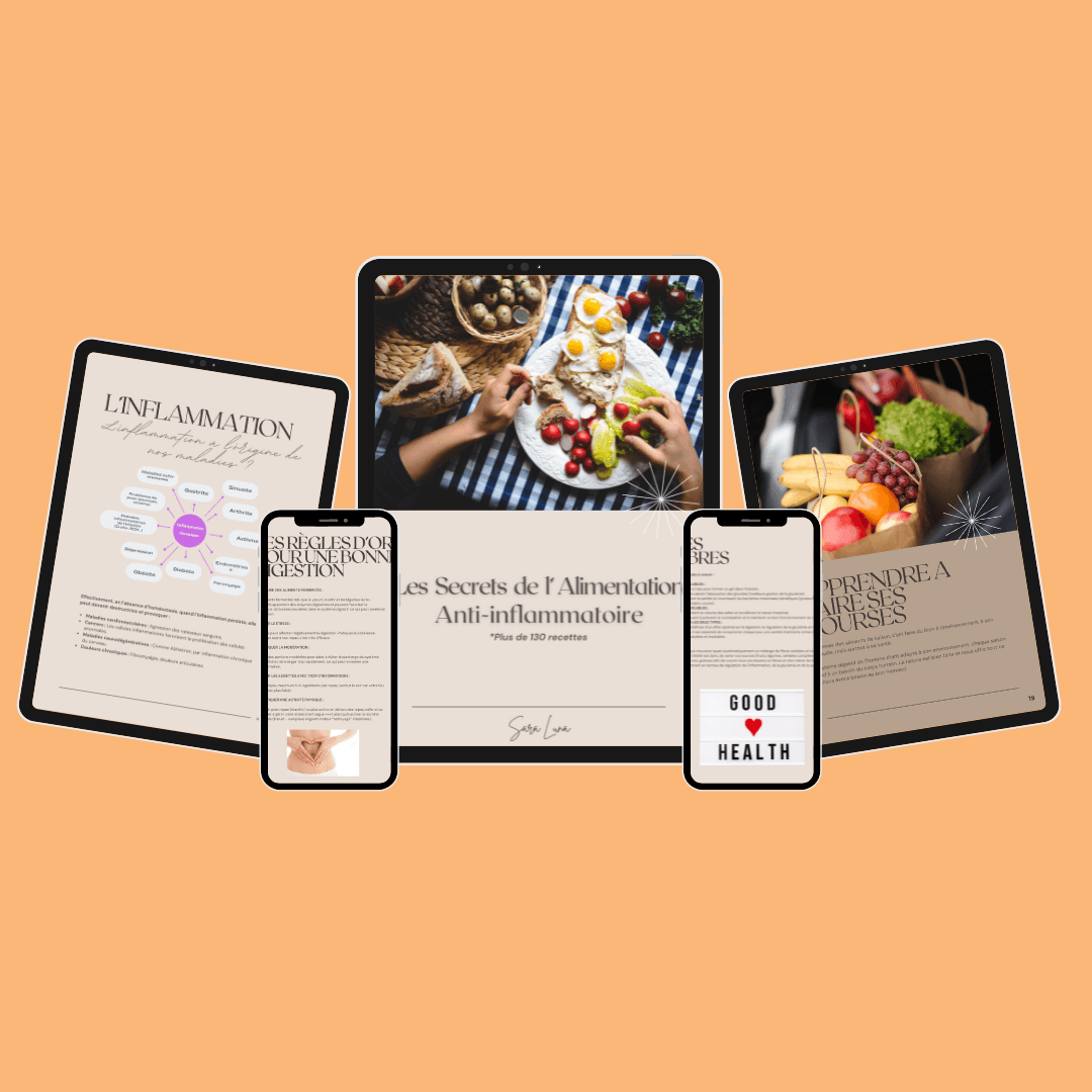 En plus du Guide Anti-Inflammatoire, un bonus GRATUIT : Le E-BOOK • PETITS-DÉJEUNERS & GOÛTERS de 240 pages qui inclut 90 recettes ! (Valeur : 19.90 CHF)