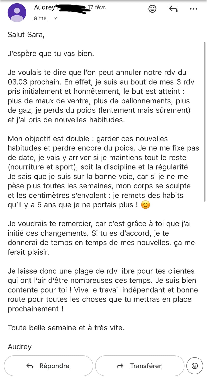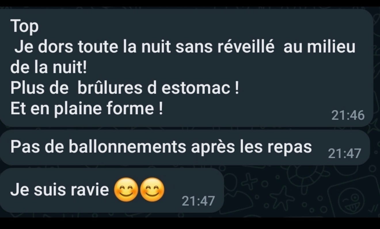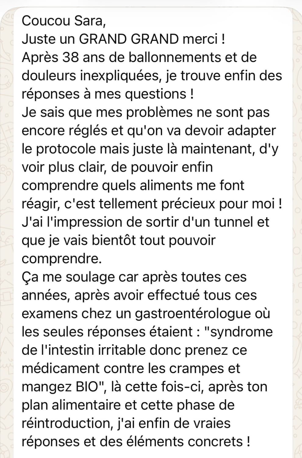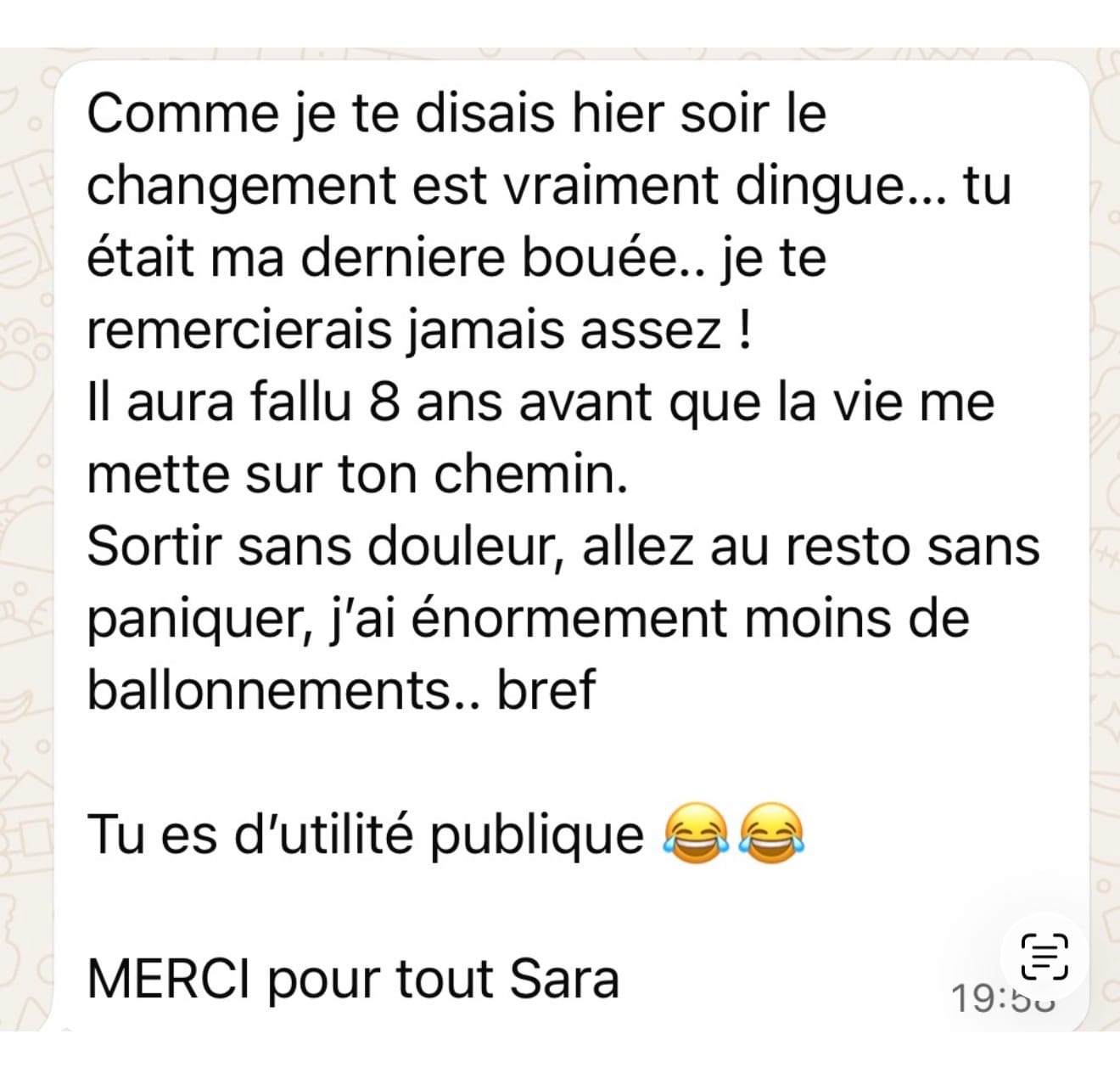 "J'ai plus eu de douleurs no de ballonnements depuis"